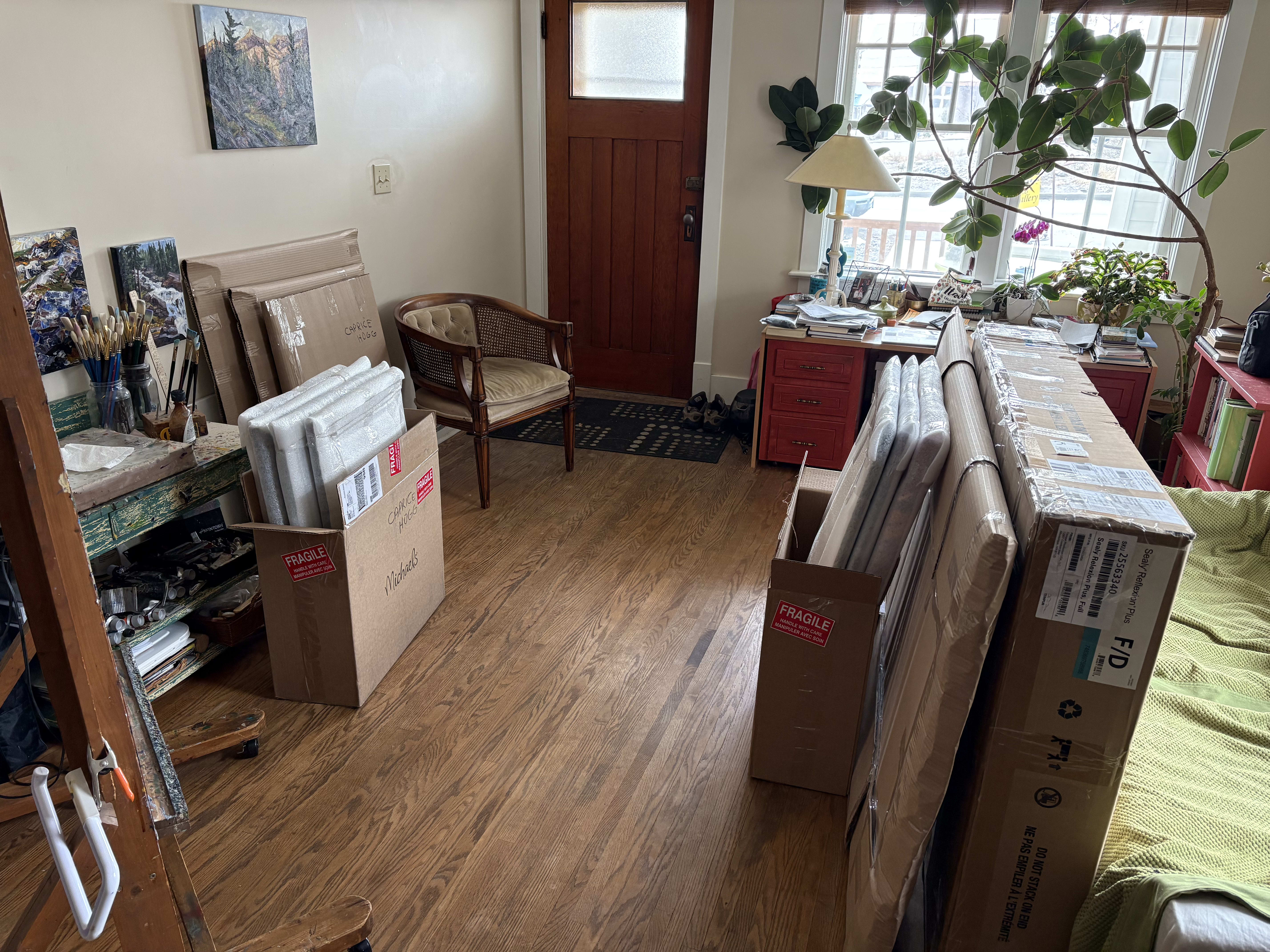 After months of preparation, when the art mover pulled away with my paintings carefully wrapped and secured, I breathed a big sigh of relief. My part of the work is complete and I leave the rest in the capable hands of the Esplanade Art and Heritage Centre. The walls in my Studio are almost bare and visitors are not pleased. To me, they look like a blank canvas. I am taking a painting reprieve and focusing on words for a while. It feels great to have a different creative focus to see what will emerge.